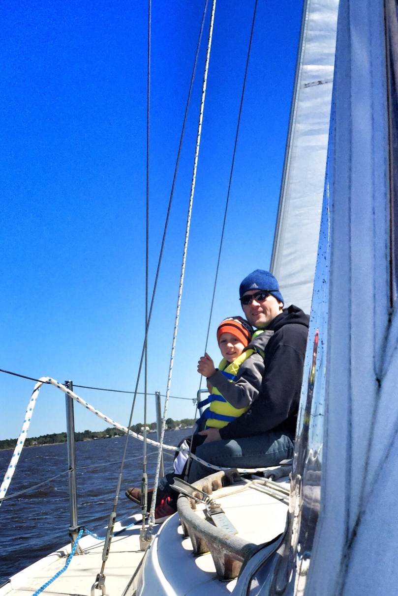 That afternoon, Wynn and Judy watched Ben and Jack while Chris, Carter, and I went sailing with Mike. We sailed to New Bern and waved to them while we passed by. It was pretty windy — which makes for good sailing, obviously — and Carter got scared we were going to tip over a few times. We didn’t though!