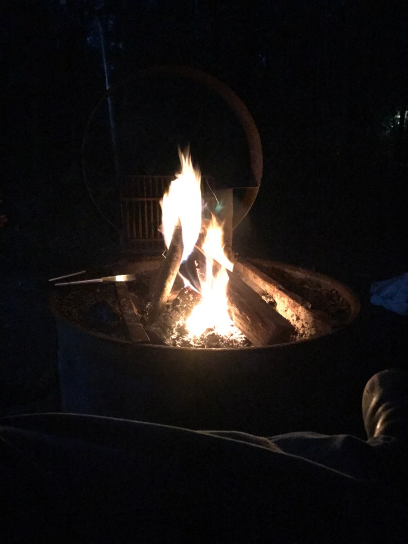 Soon after we set up camp, Wynn, Judy, and Mike brought pizza and we ate together at the campground. After dinner, we took a walk/bike ride to check out the beach. We got there just in time to see the most amazing sunset. We finished the evening with a campfire.