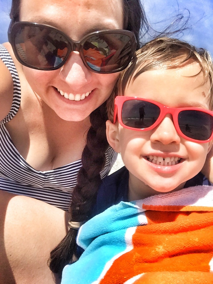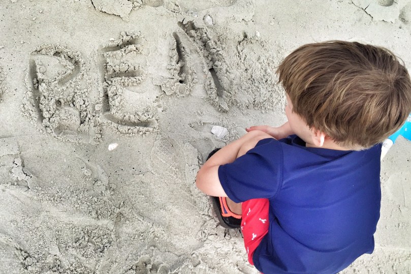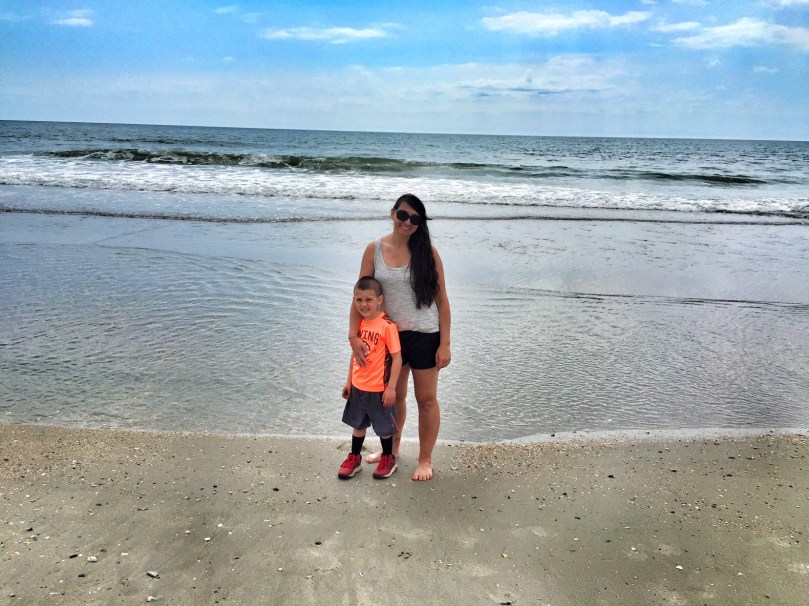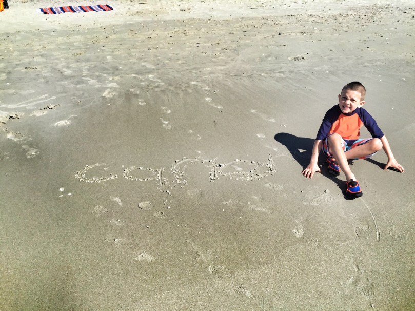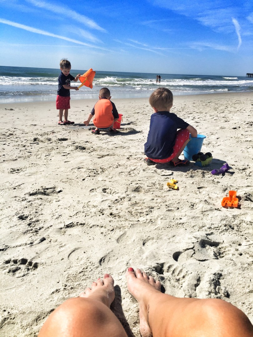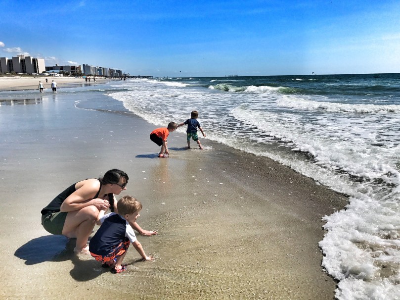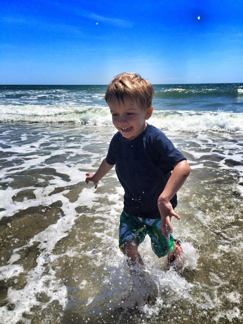 After we all got back, the twins changed into their bathing suits – Carter opted not to for some reason – and we headed to the beach to play. While the boys are no strangers to beaches and water, this was the boys first time at the open ocean.
