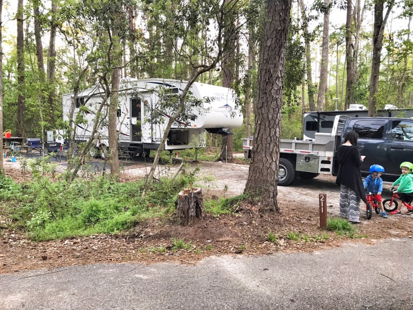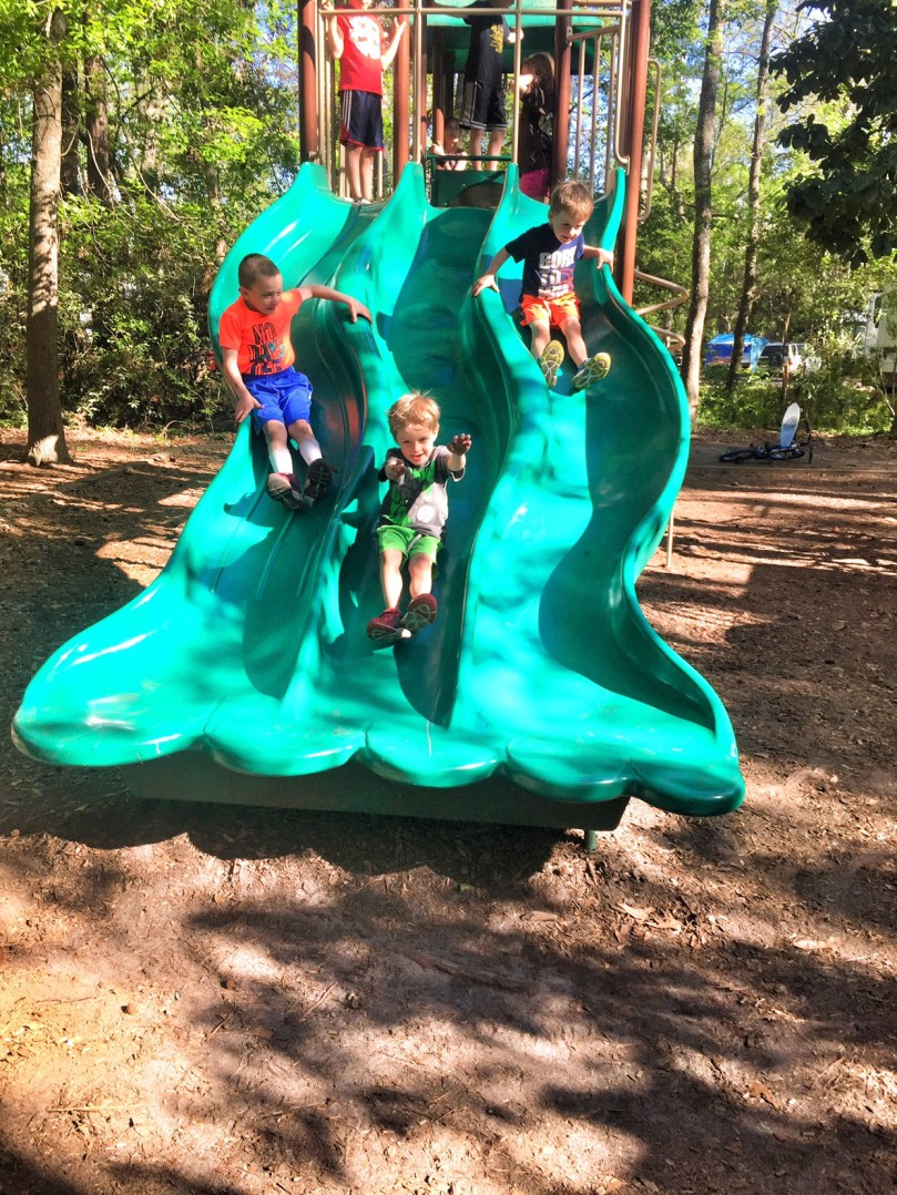 On Friday morning, we packed up the camper, said goodbye to Myrtle Beach and began our trip back home. We stayed at Pocahontas State Park in Virginia that night. We got there late and we weren’t there for very long, but we were able to check out the most important part — the playground.