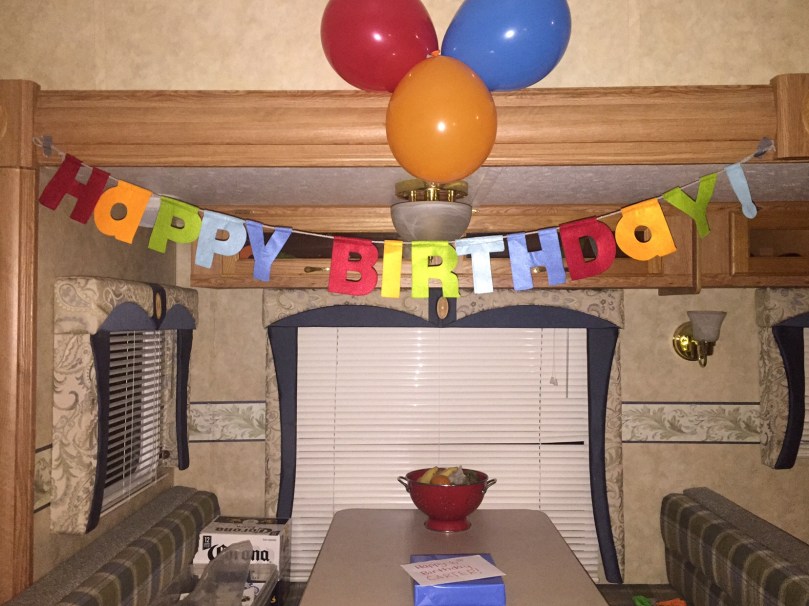 We stayed at Pine Grove Furnace State Park again on Saturday night. Carter’s birthday and Easter were the next day, so after the kids went to bed, Chris and I got to work decorating the camper.