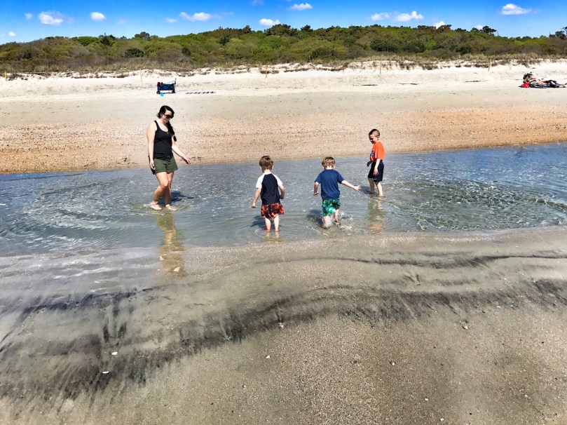 Thursday morning, the boys went to check out the Nature Center but it was closed. Later in the day, the twins and I went to the beach while Chris and Carter went for another bike ride.