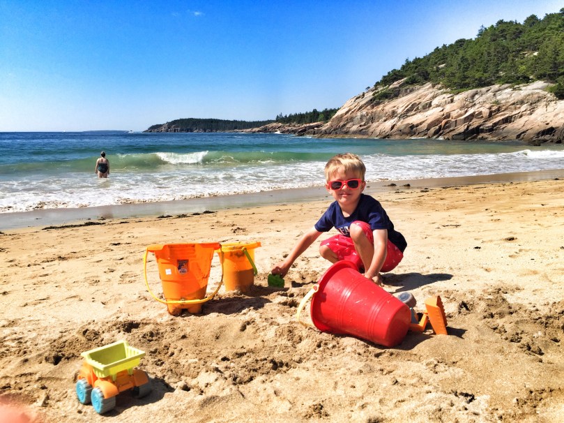 While the big guys were out hiking, the little guys and I were relaxing at Sand Beach! We lucked out with a beautiful day to play on the beach.