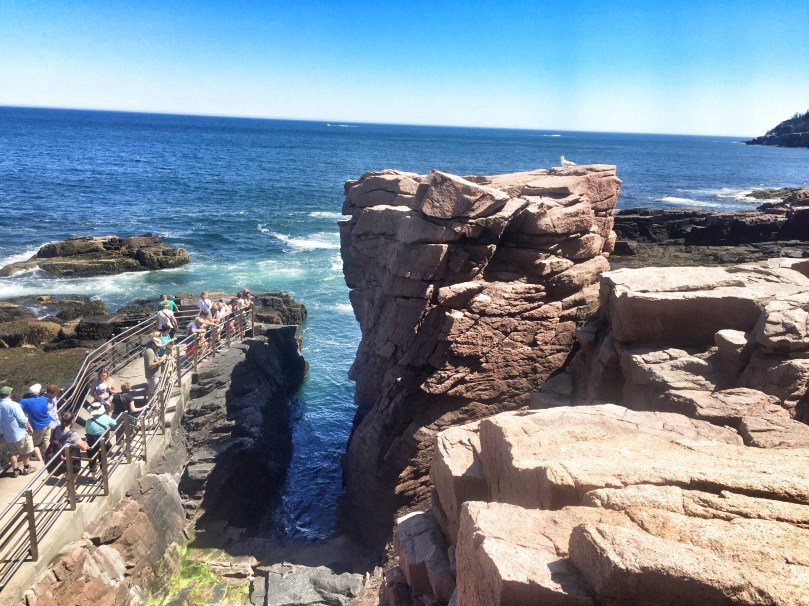 After the boys’ hike, they picked us up from the beach and we checked out Thunder Hole. Thunder Hole is a natural rock inlet where waves crash with a thunderous boom and high-flying foam when seas are high.
