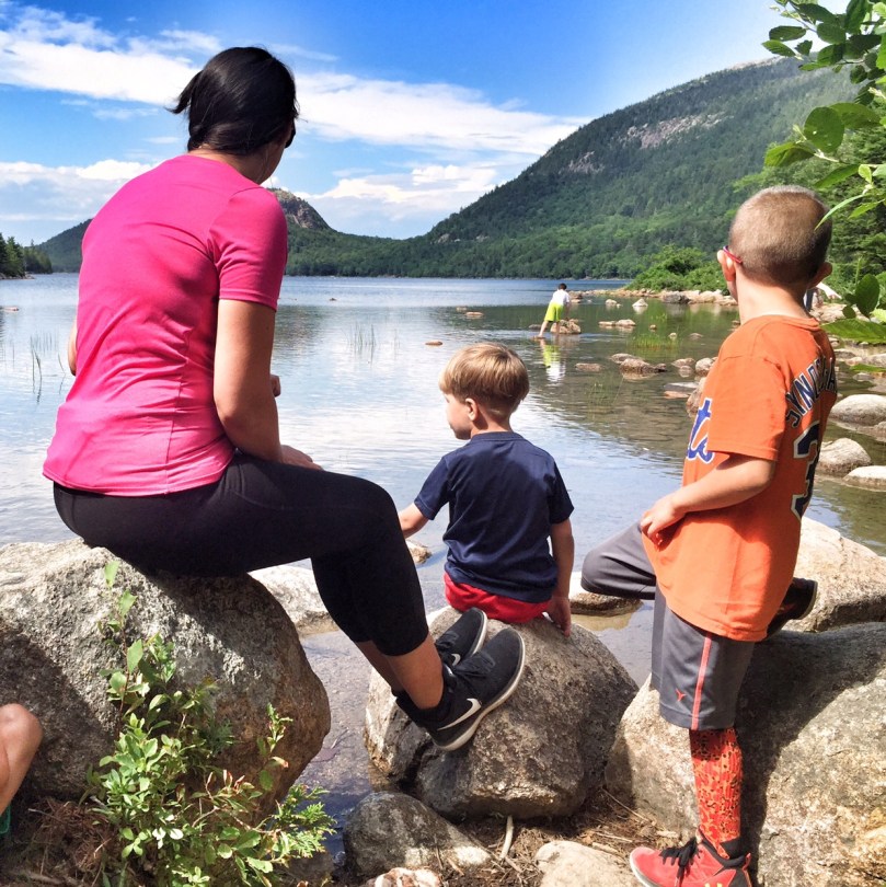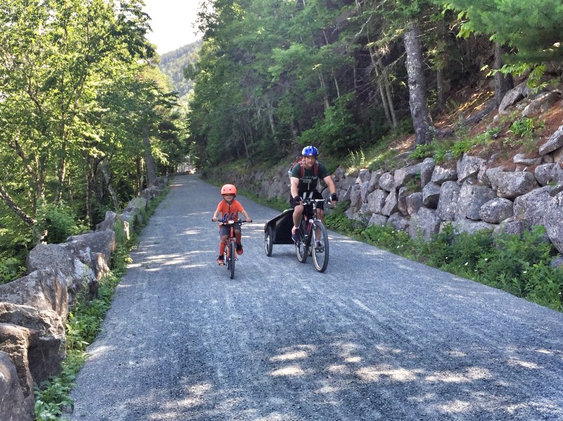 We parked in a lot and rode our bikes around Jordan Pond. Well, Chris, Carter, and I rode our bikes. Ben & Jack got to take it easy in the bugger. Have I mentioned yet that this is the same bugger Chris and his brother used to ride in when they were kids?