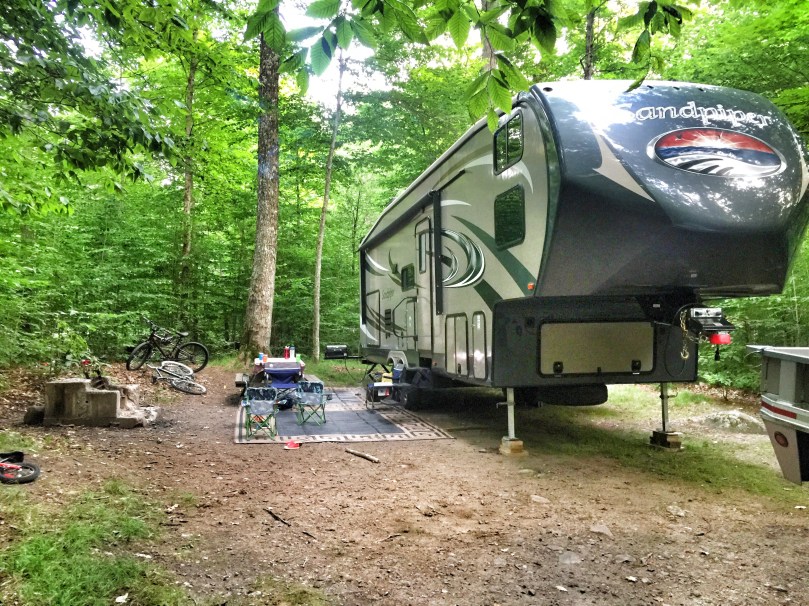 Cranberry Lake Campground is located on Cranberry Lake in the northwestern region of the Adirondacks. Cranberry Lake is one of the largest remote lakes in the Adirondacks. We arrived at the campground a little before 4pm and got the new camper all set up for the first time.
