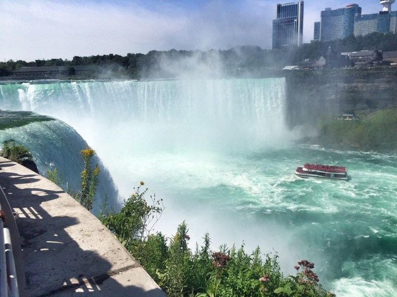 First, we walked around the park and checked out Horseshoe Falls. Horseshoe Falls is the largest of the three waterfalls that make up Niagara Falls and it is on the border of the U.S. and Canada.