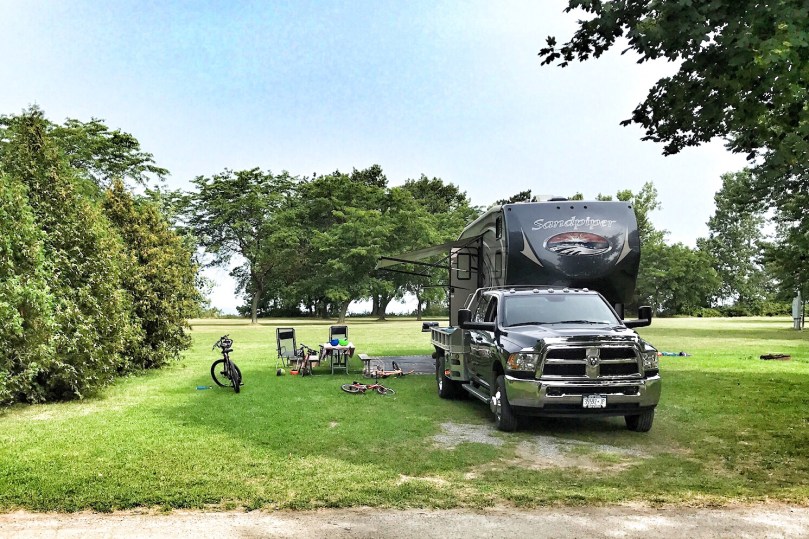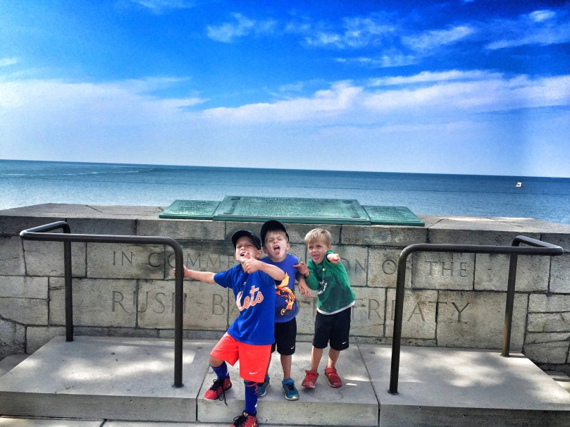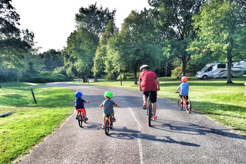 On Saturday morning, we headed up to Four Mile Creek State Park Campground in Youngstown, New York. We loved it here! Honestly, it’s one of the most talked about campgrounds when we reminisce. The campground overlooks Lake Ontario and has spectacular panoramic views. Behind our campsite was a big grassy area and a view of Lake Ontario. It had a great playground which was within sight of our campsite so we felt comfortable to let Carter go over and play by himself. The campground loops were perfect for riding bikes… Ben and Jack, who just learned to ride bicycles on our last camping trip, were constantly asking to ride around the loops.