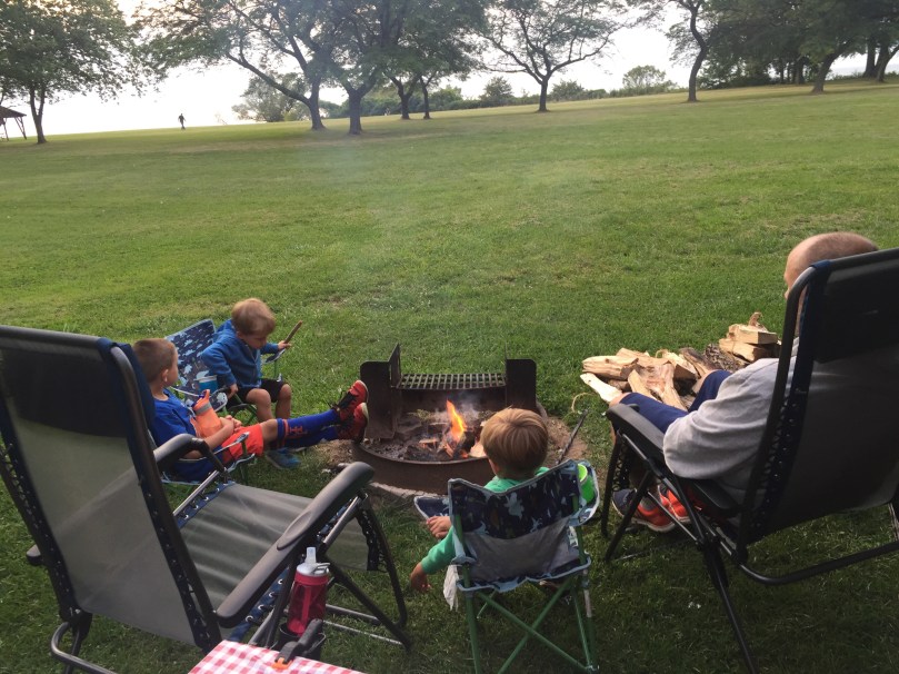 Back at the campground, we played on the playground, ate dinner, and Chris and Carter played wiffle ball with a bunch of kids and a few parents. We watched the sunset on Lake Ontario and had one last campfire before heading home the next morning.