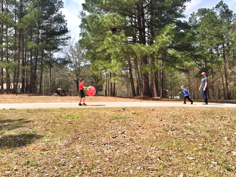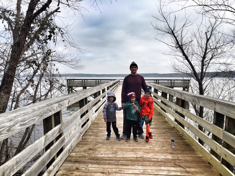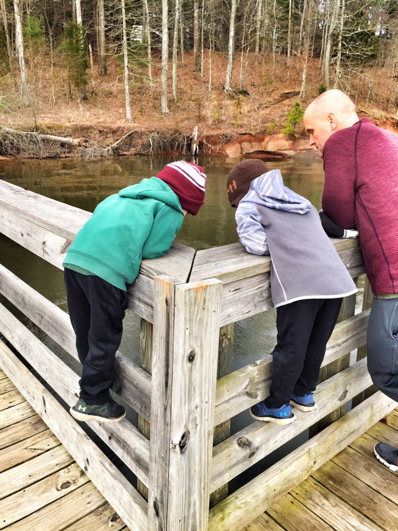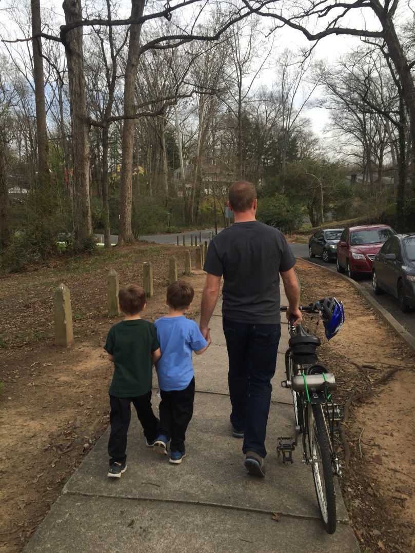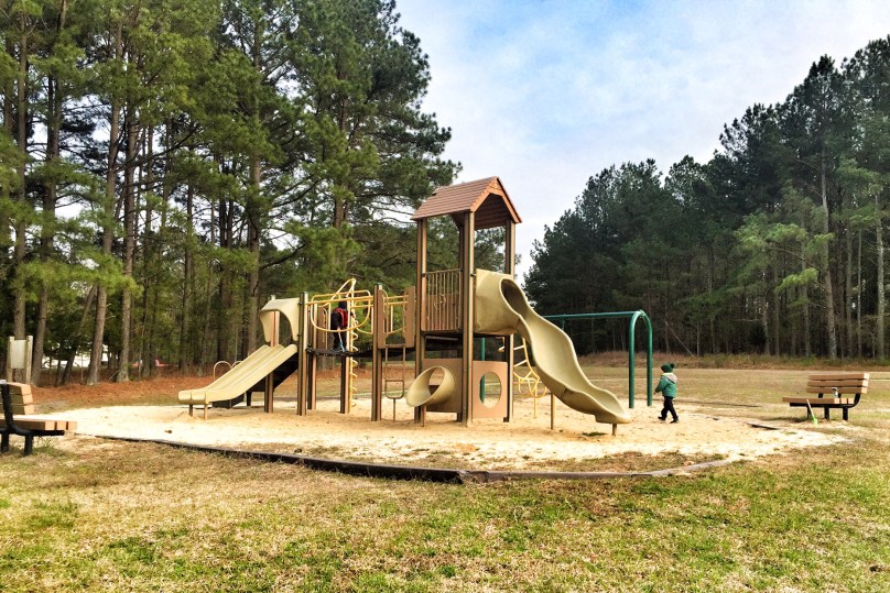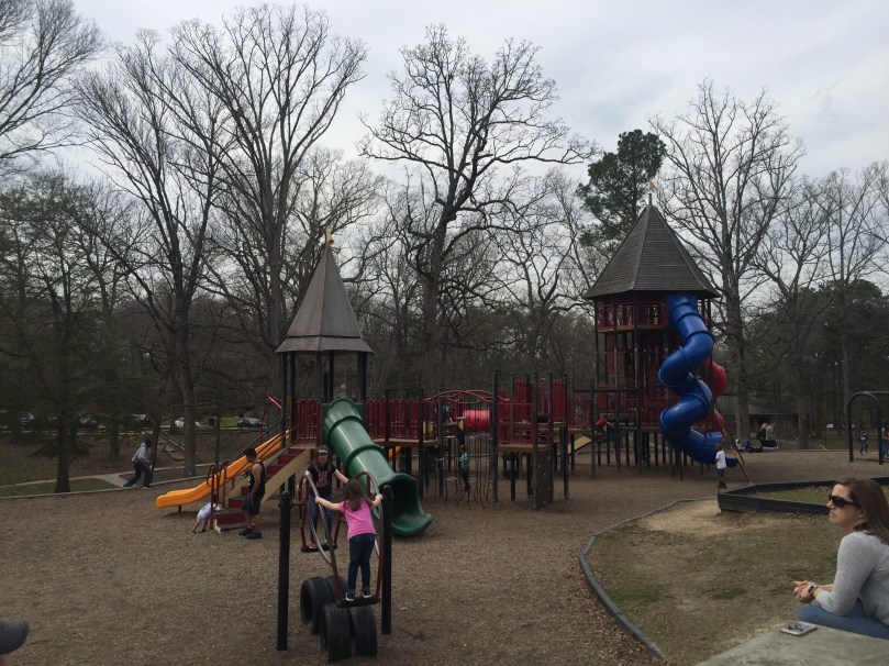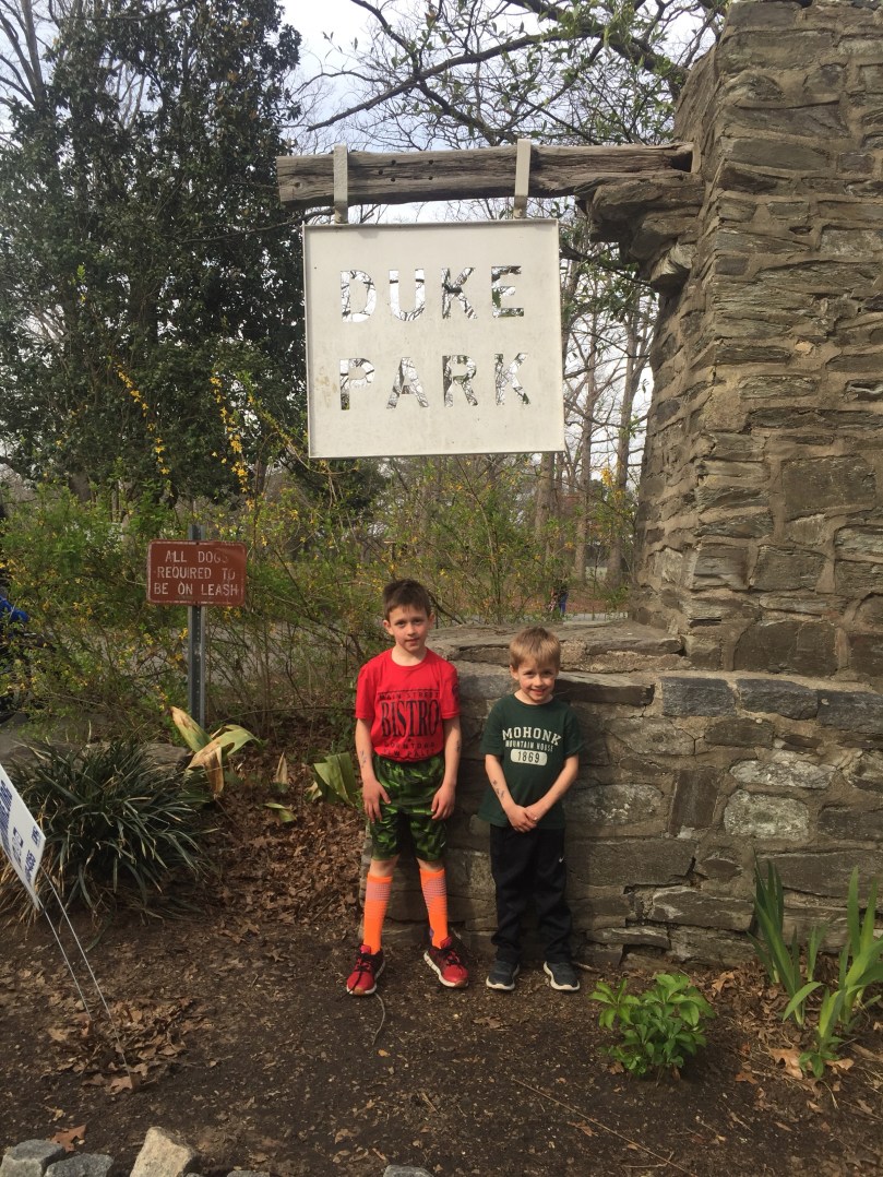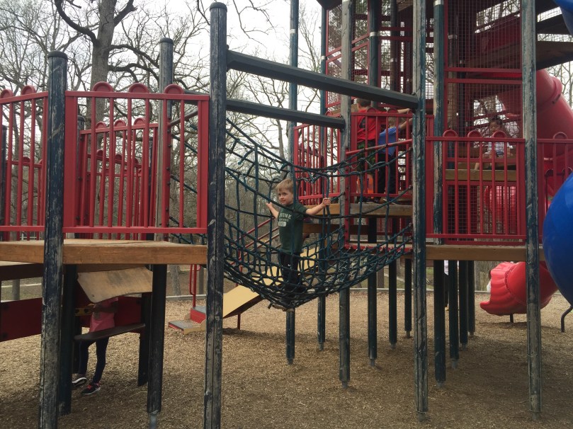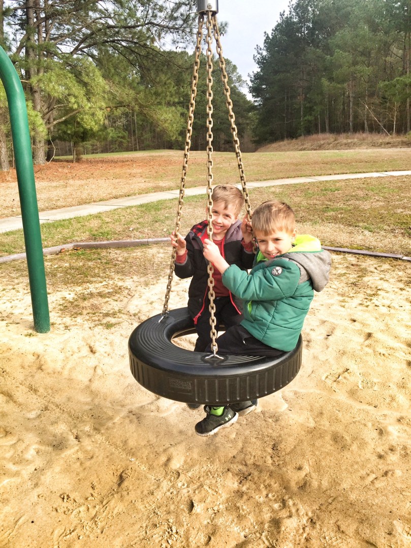 Mike came to the campground around lunchtime so we ate lunch and played around the campsite for a little bit. The boys were asking to go see Uncle Mike’s house so we drove over to check it out. He lives close to Duke Park, so we took a walk over to let the boys play. It was an awesome playground. I’ve never seen slides so along before. All three boys went down without hesitation.