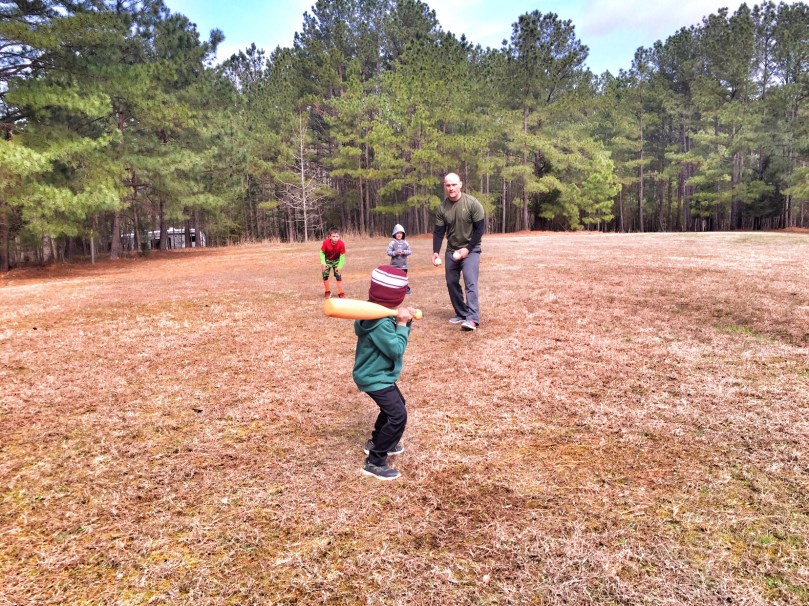 We stayed at the campground on Wednesday morning. We finally had some nice weather so it was wonderful to spend time outside. We took a walk to check out the fishing pier and went back to the playground and played wiffle ball.