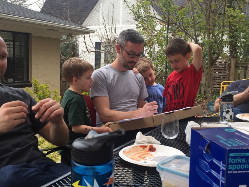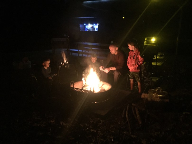 We headed back to his house just in time to greet Wynn and Judy when they arrived. We had pizza for dinner and the boys asked Uncle Eric to draw a bunch of things for them. We went back to the campground and had a fire and s’mores before tucking the boys in for the night.