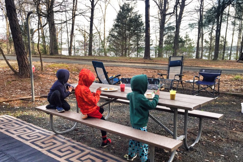 We woke up to beautiful weather on Thursday morning, so the boys ate breakfast outside.