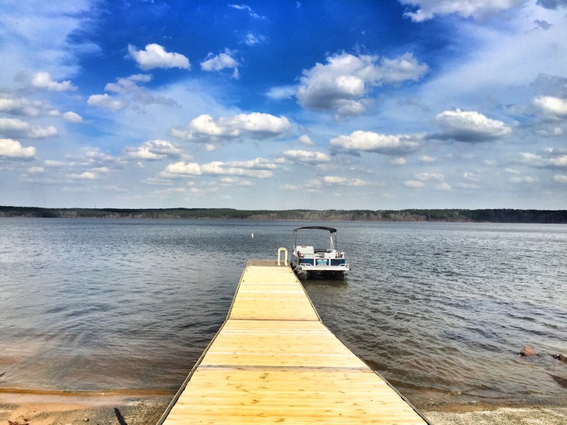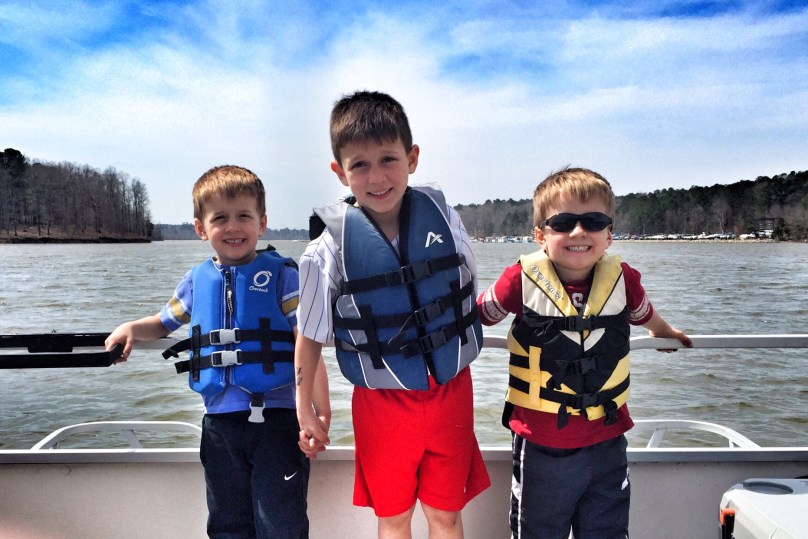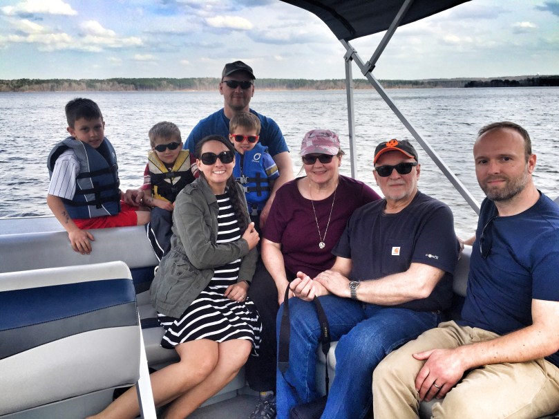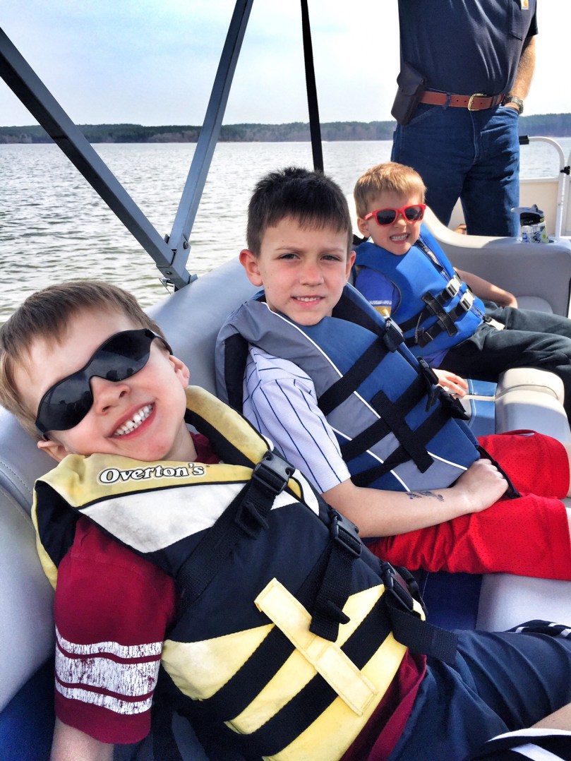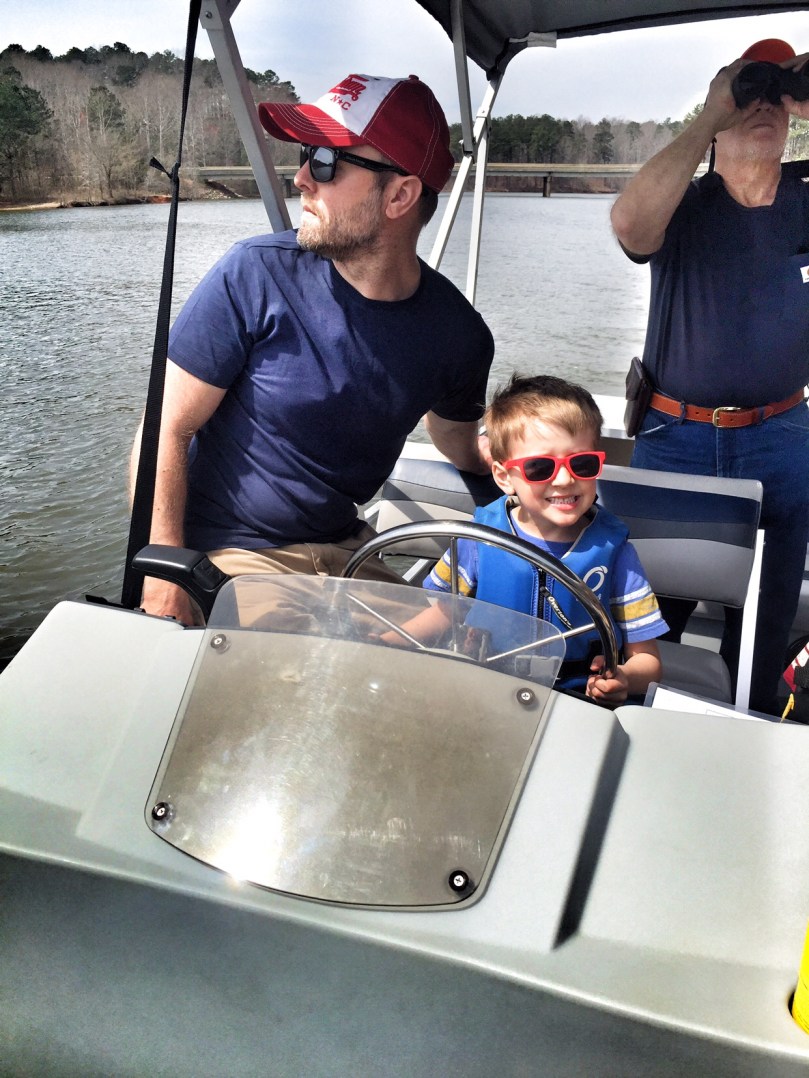 Since we weren’t going to be sailing on this trip, we thought it would be fun to rent a pontoon boat. Chris found two companies who did it in the area and we ended up renting from Lake Time Boat Rental. They weren’t open for the season yet, but they went ahead and got a boat ready for us anyway. They delivered the pontoon to the boat launch in the campground which was super convenient. We loaded ourselves and our stuff on the pontoon and we were on our way! The boys all got a turn to drive with Uncle Mike, which they loved.