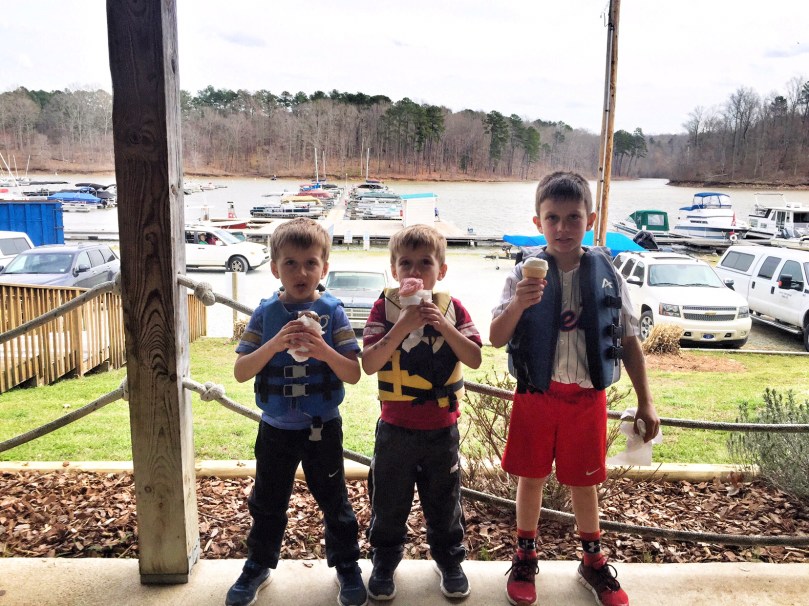 We anchored and had lunch and after lunch we stopped at the Marina for some ice cream.