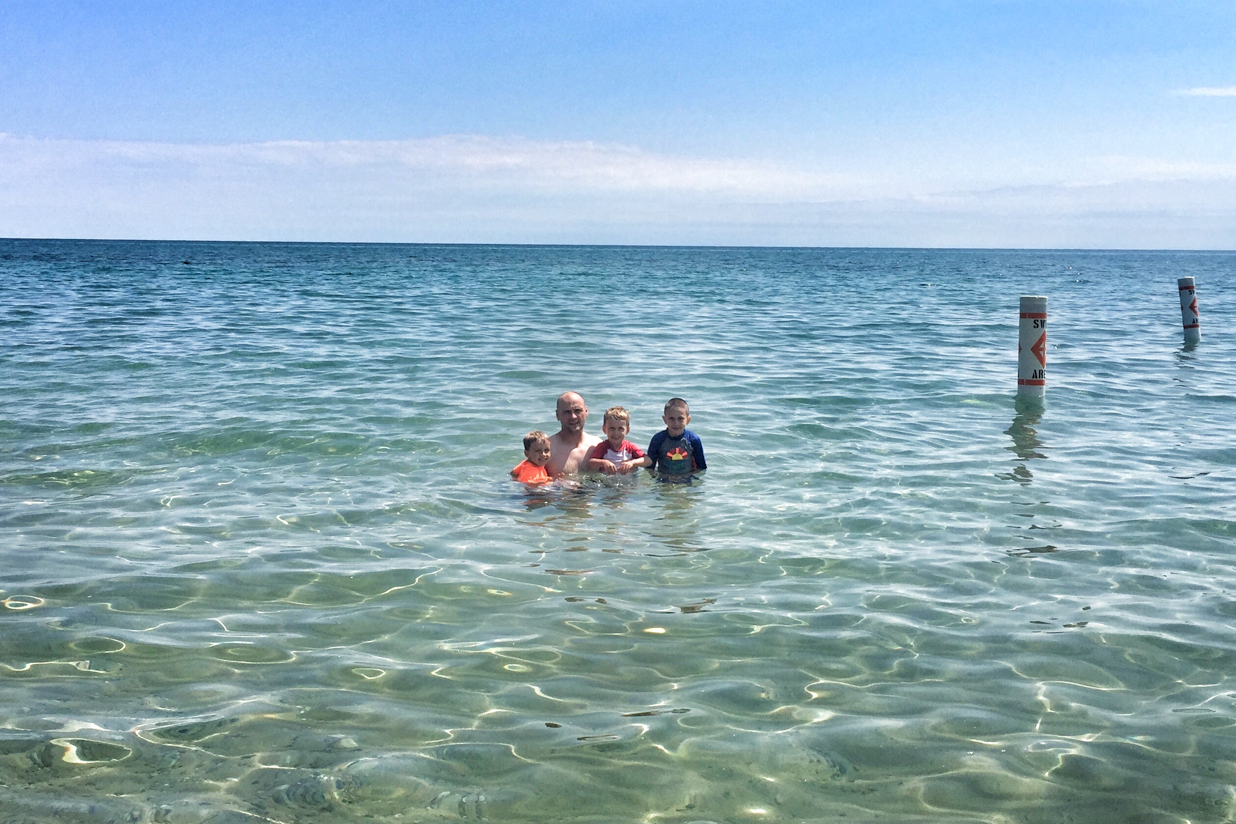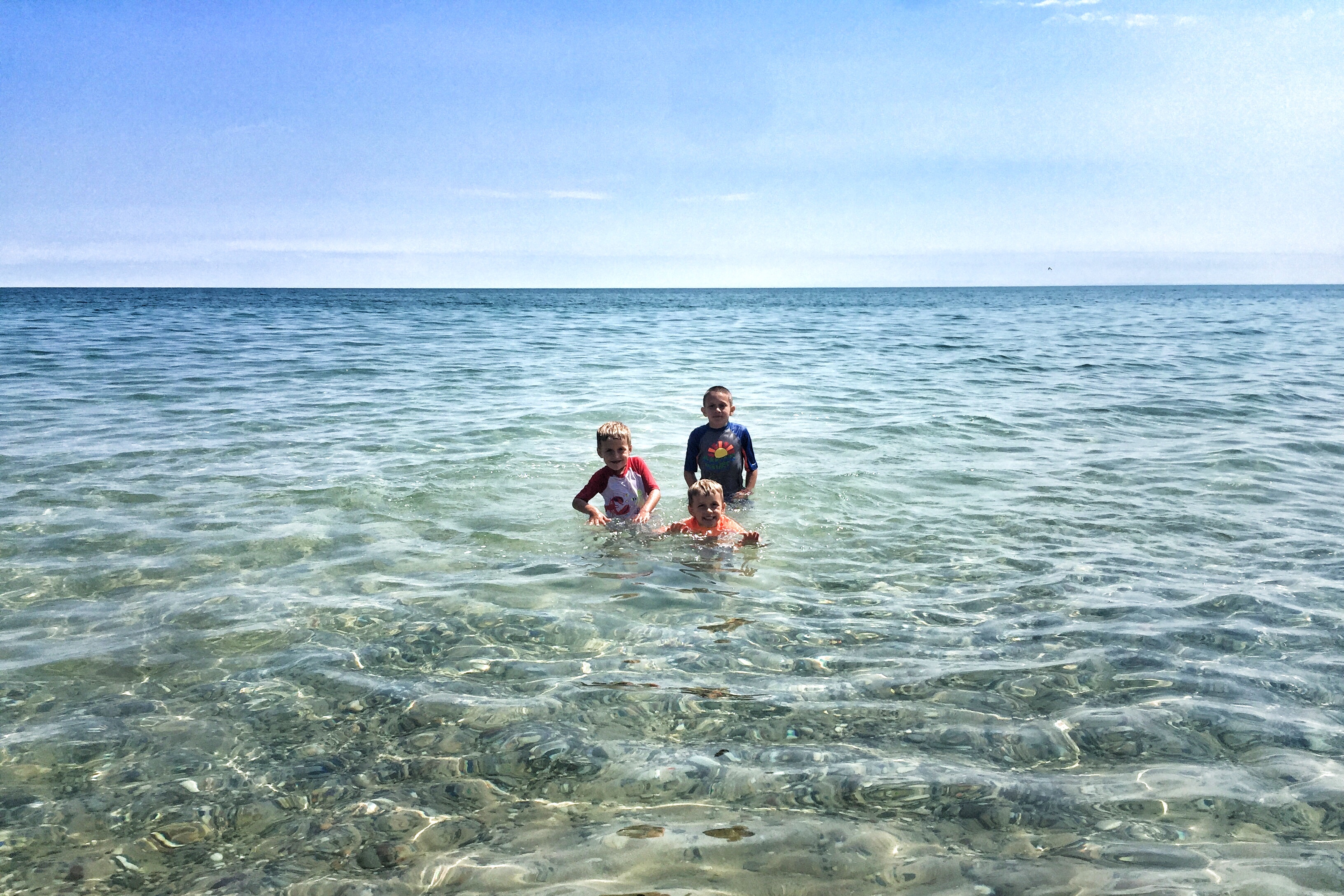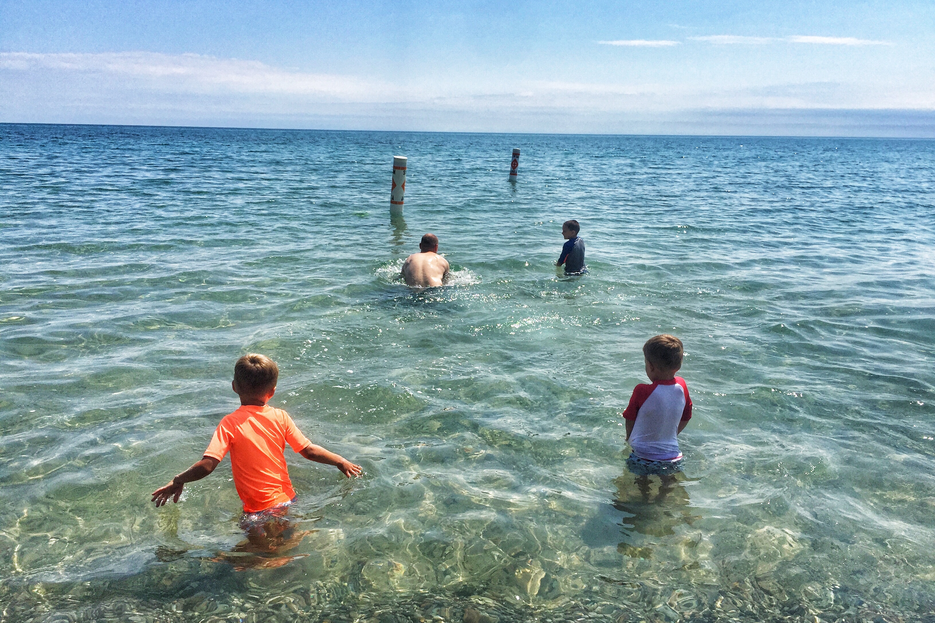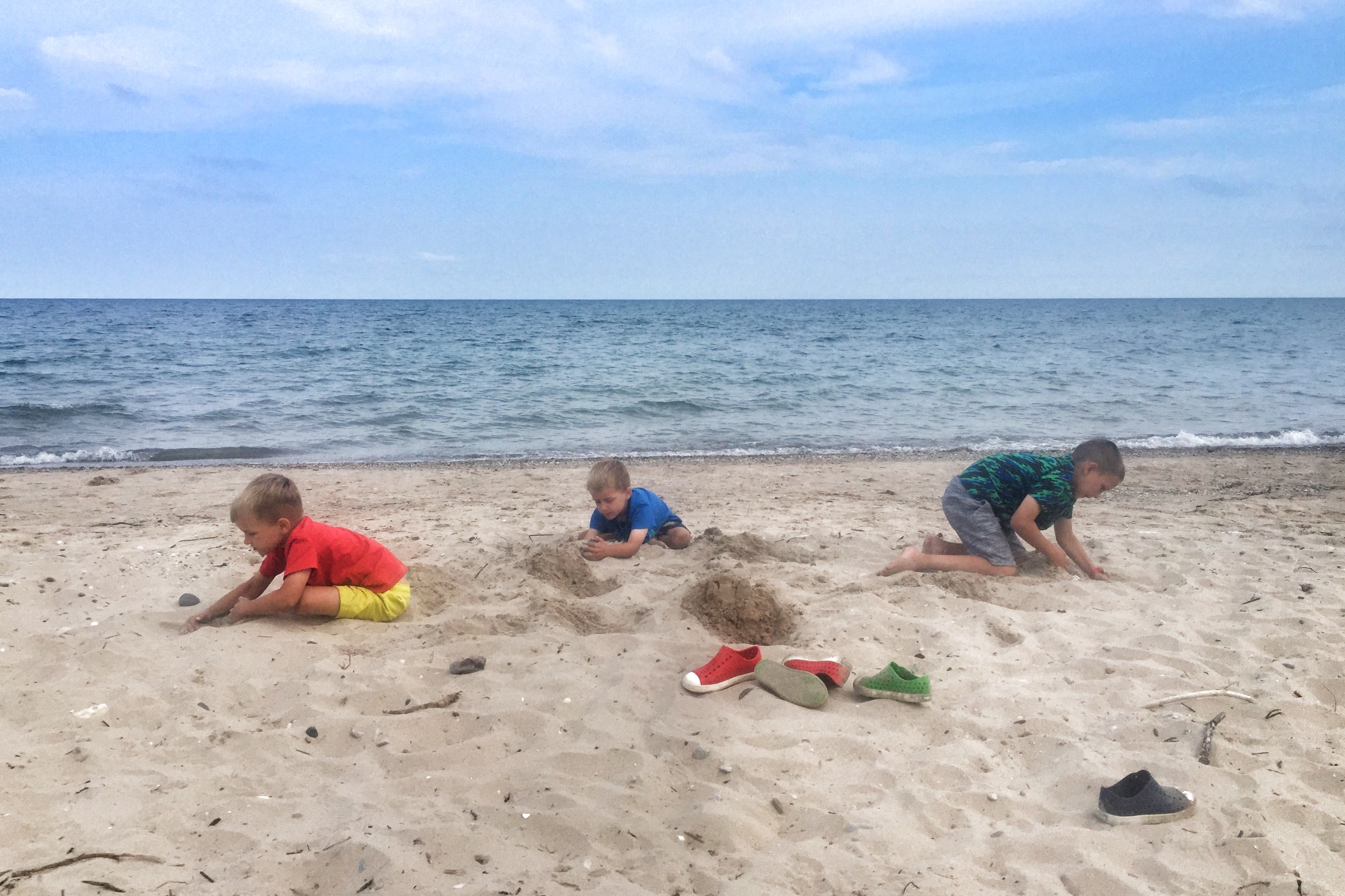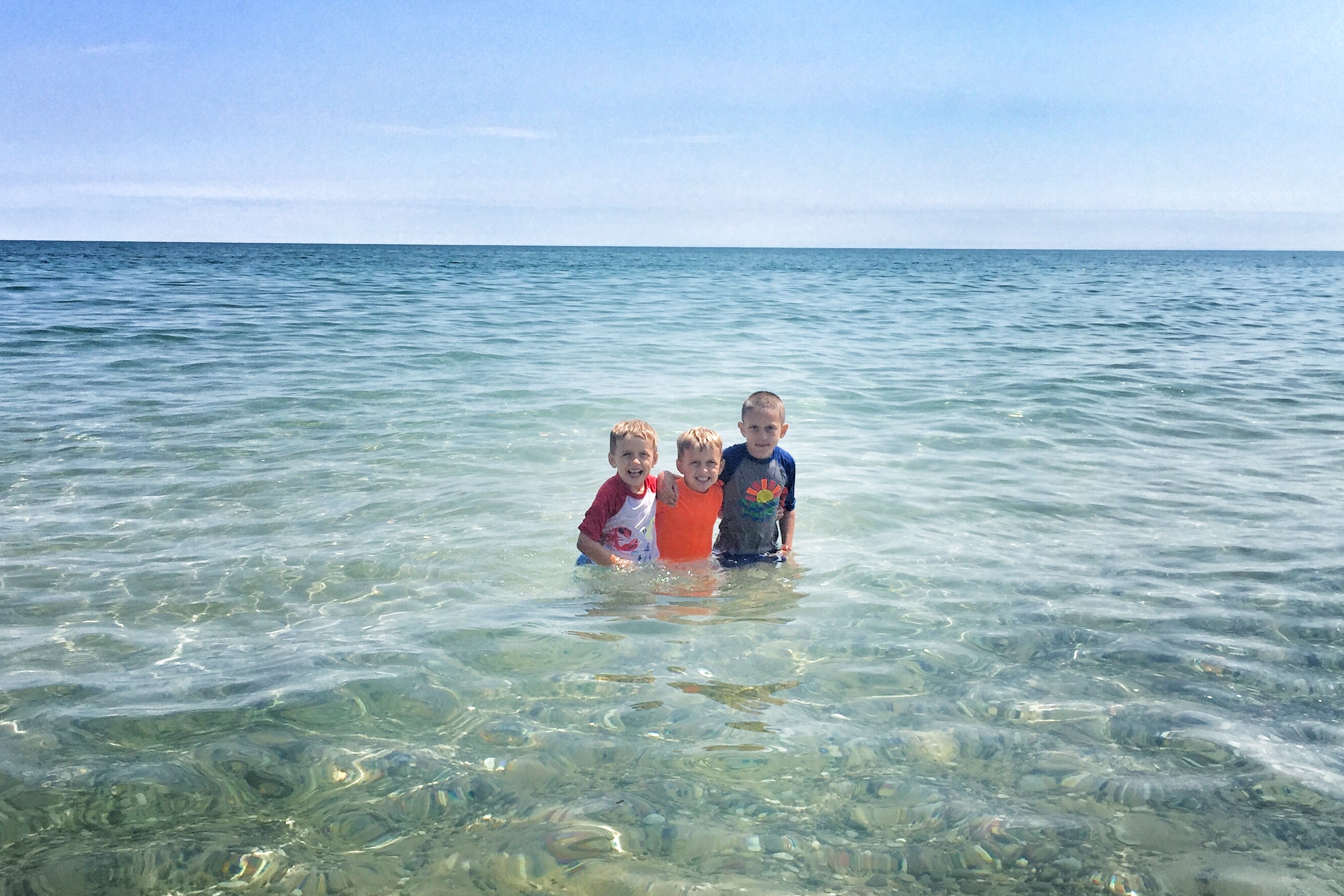 Lake Huron was more beautiful than Lake Ontario and Lake Erie, in my opinion! The water was so clear! The boys had a blast swimming in the lake. Even Chris went for a swim! Chris and Carter threw the football and we all spent a good amount time playing in the sand.
