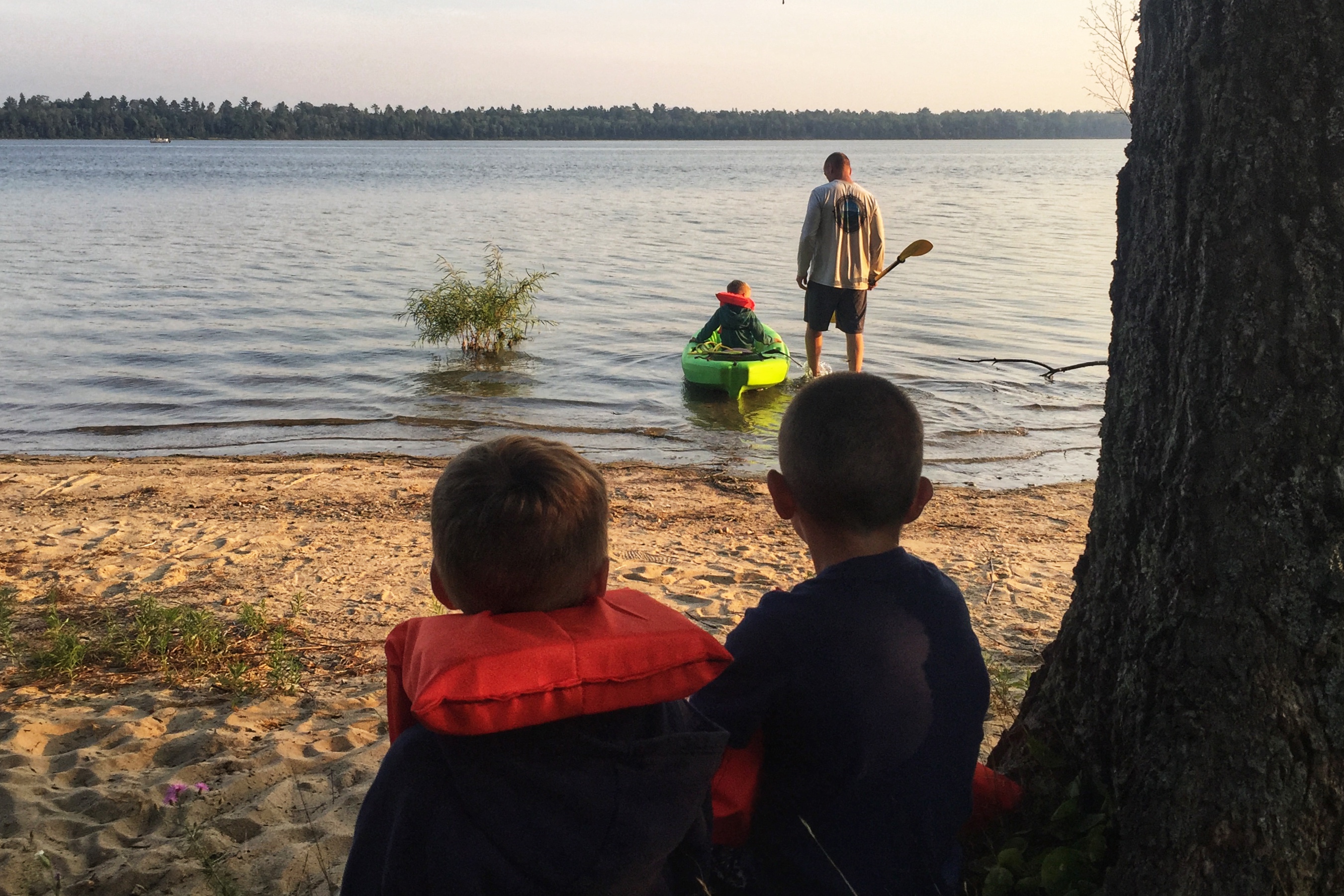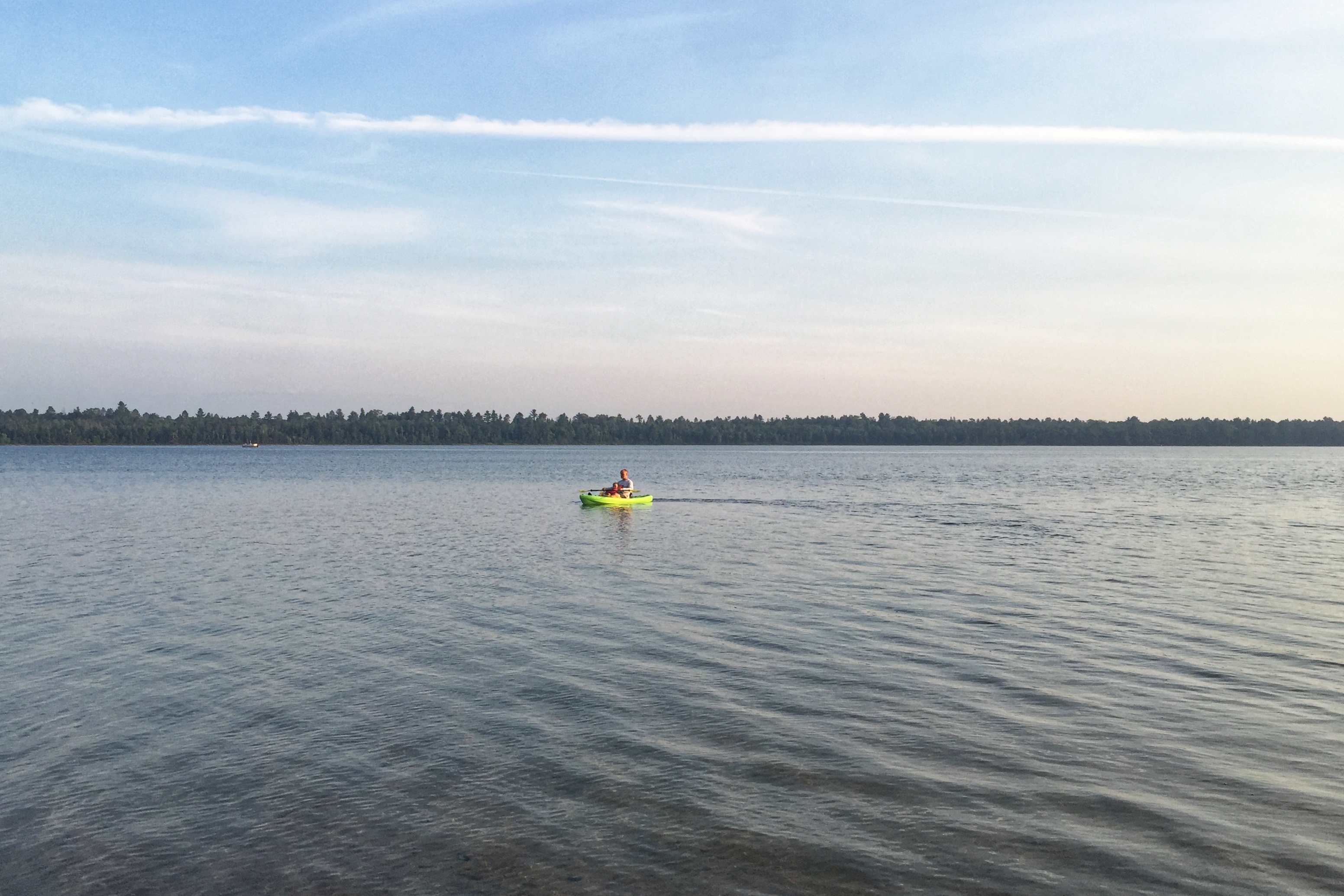 Back at the campsite, we had dinner and did some kayaking on Muskallonge Lake. This is the only time we used the kayak the whole trip as the Great Lakes were not ideal for kayaking with little kids. Chris took turns with Benjamin and Jackson and then Carter was able to kayak by himself. I stayed ashore and took pictures.