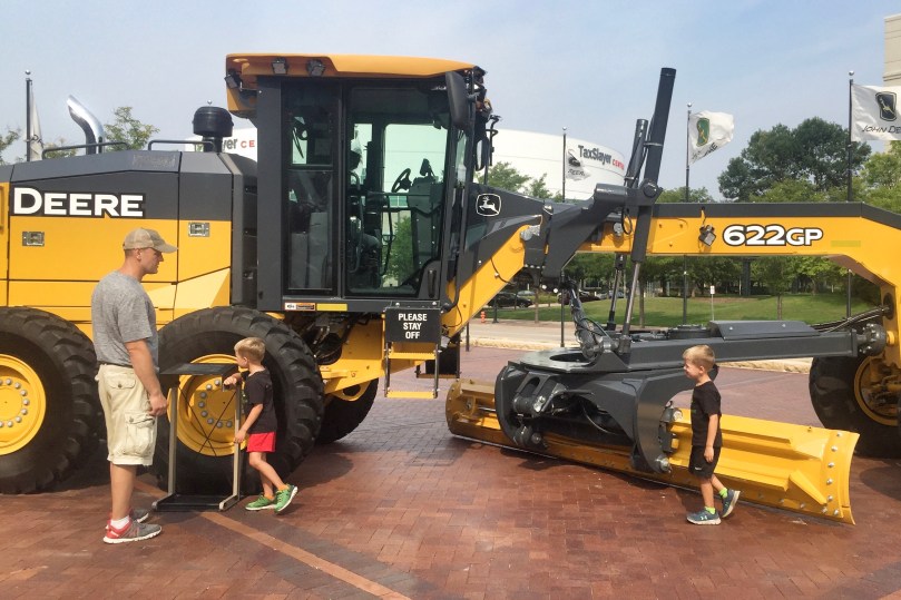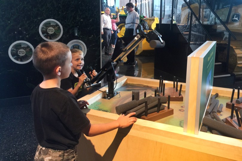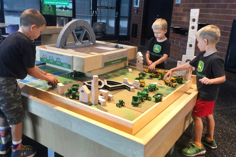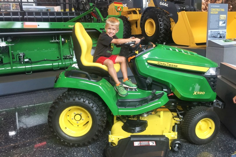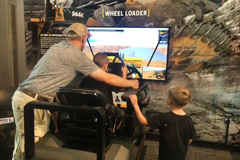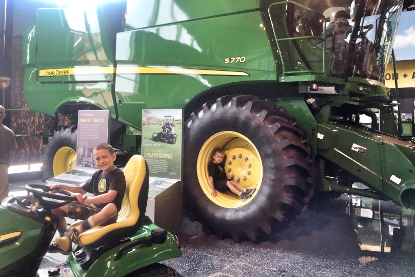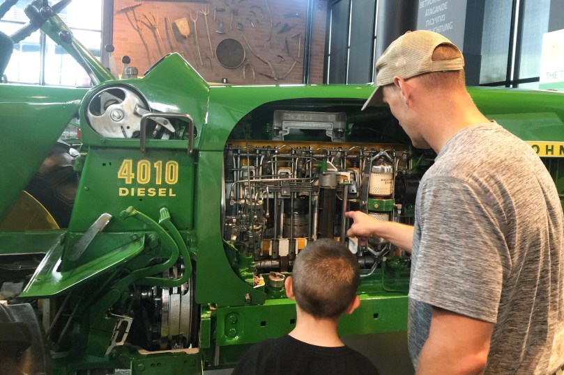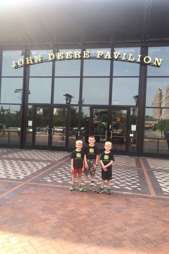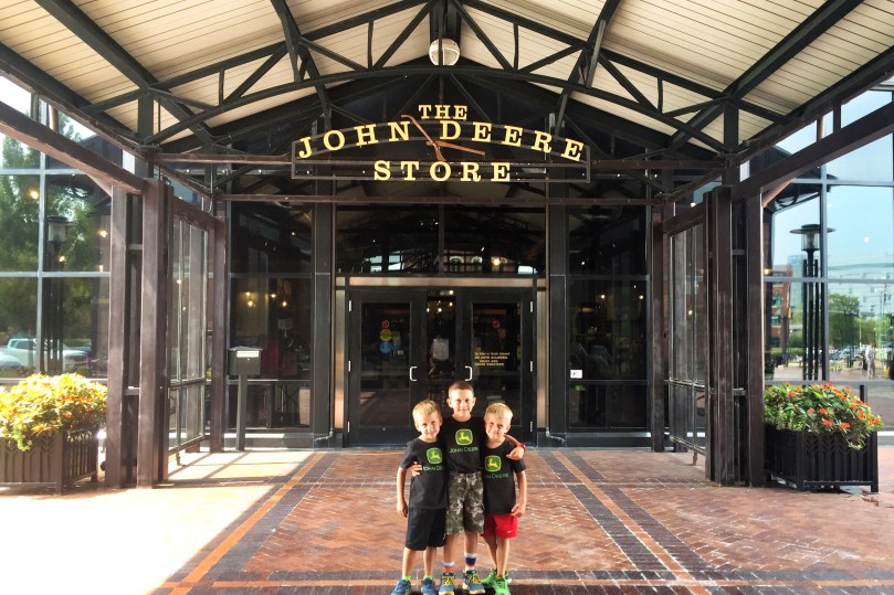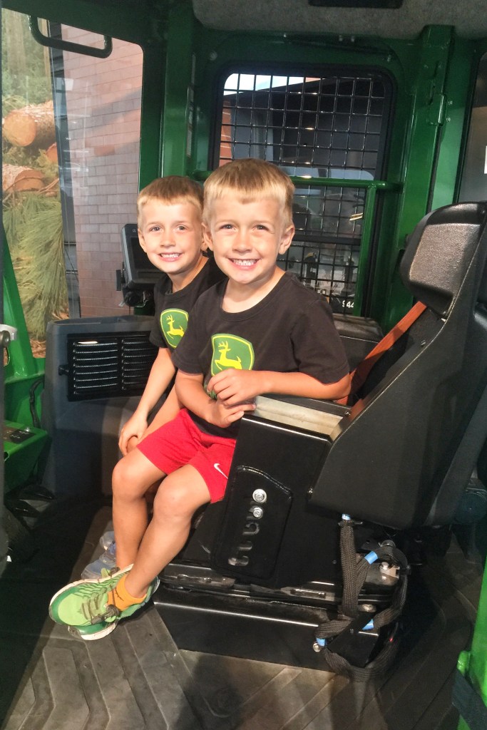 The next morning, we took our little farmers to check out the John Deere Pavilion in Moline, Illinois! The Pavilion is known for its hands-on exhibits that are focused on tractors and other heavy machinery. The boys had been looking forward to going to the “tractor museum” for awhile. They loved sitting on all the equipment and playing in the Discovery Zone, but their favorite part was going to the John Deere store and looking at all the toys.