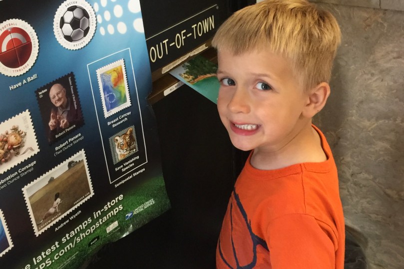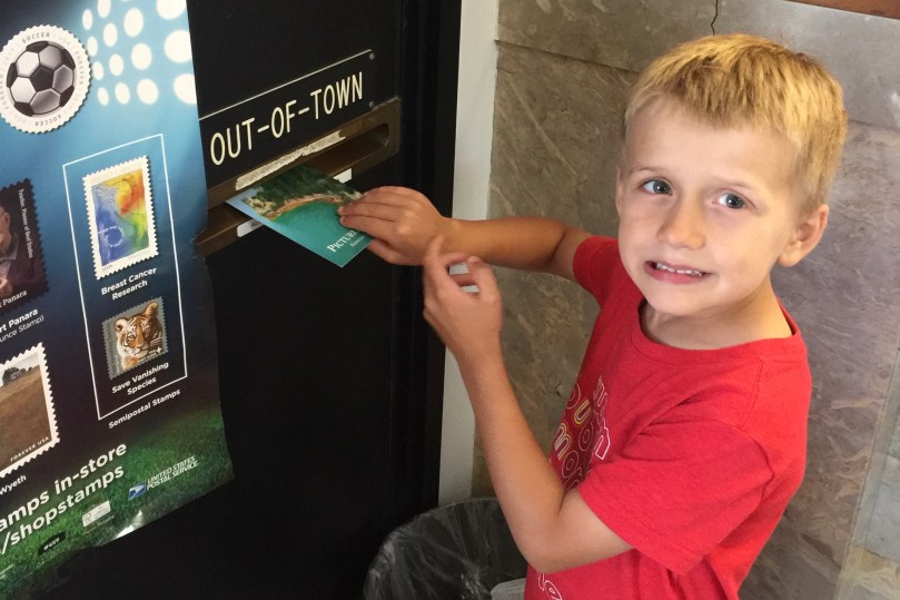 After swimming in the lake, we found the local post office in Shelbyville and mailed post cards to family and friends we had purchased throughout our trip.