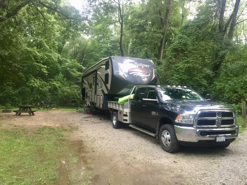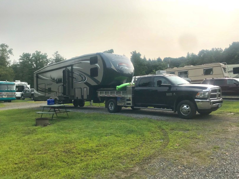 On Saturday night, we camped at Woodland Campground in Pennsylvania. The campsite we had reserved was unavailable because the previous camper’s rig broke down. They were able to get us in to another site though. Woodland is a family owned campground and that evening the owners had an ice cream social on their patio for all the campers.