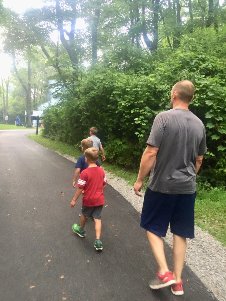 The next morning, we packed up and started our trip back home. We spent Friday night at Pokagon State Park in Indiana. It was a long day of traveling and our campsite was pretty wet when we arrived. But we made the most of it — we ate dinner, the boys rode their bikes, and went for a walk. It’s a shame we didn’t get to explore more because it looks like an awesome park!