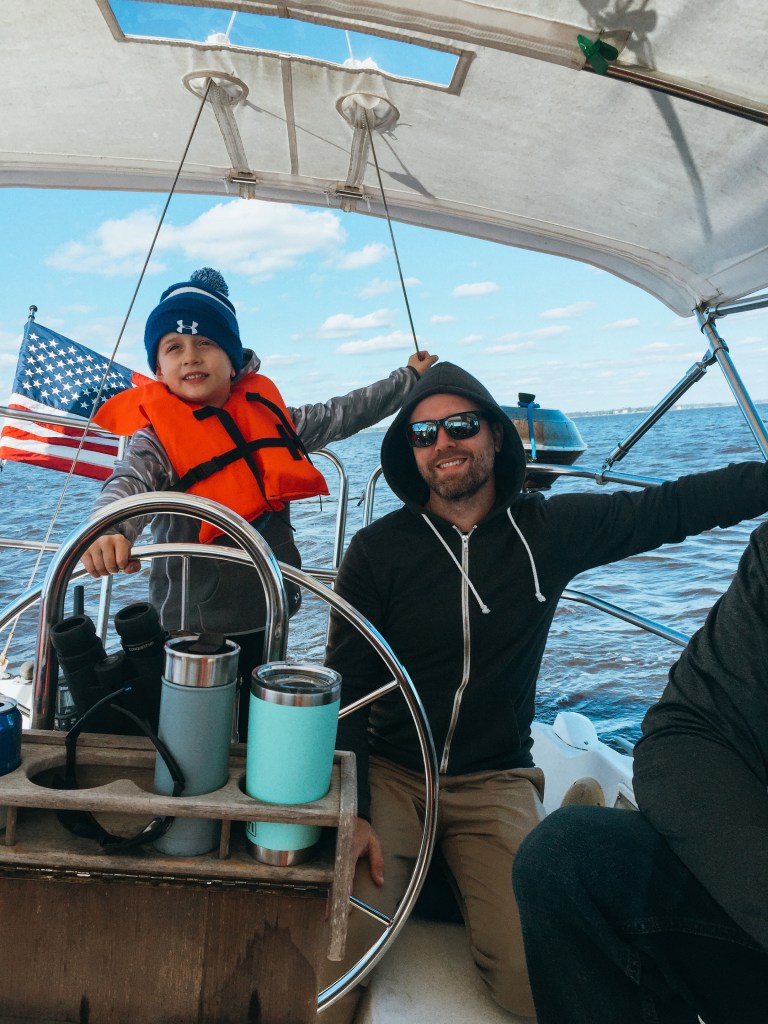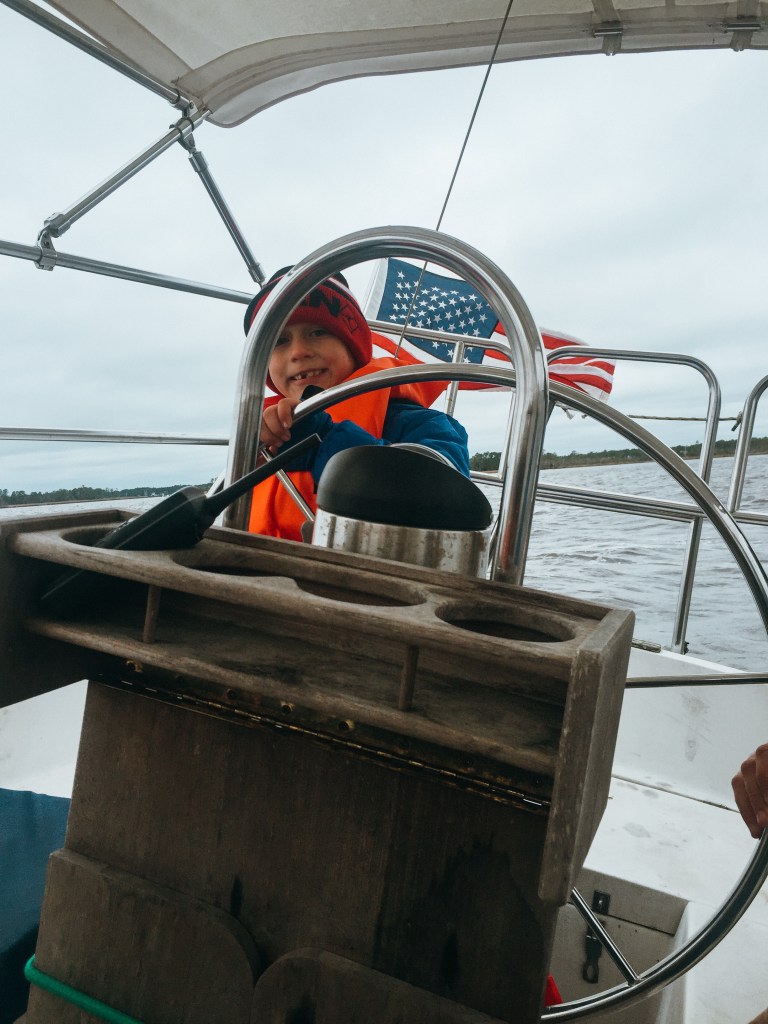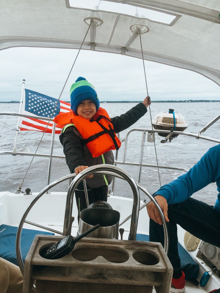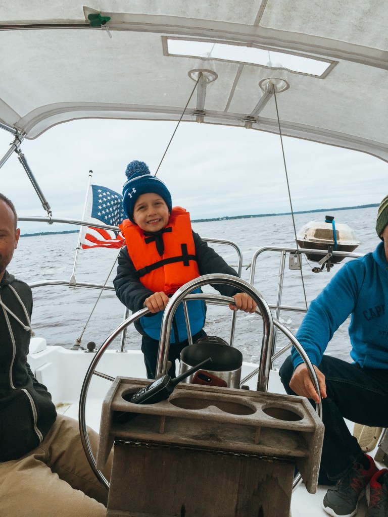 The next morning, we packed some lunches and headed over to Northwest Creek Marina for some sailing. The boys each got a turn to drive the boat and did really well!
