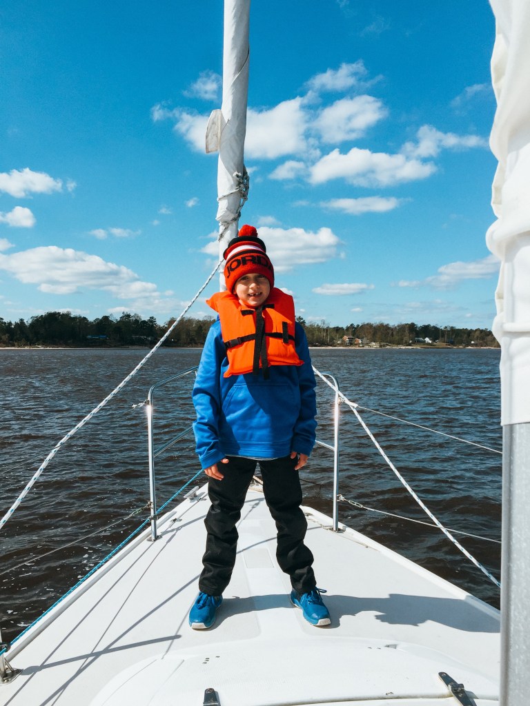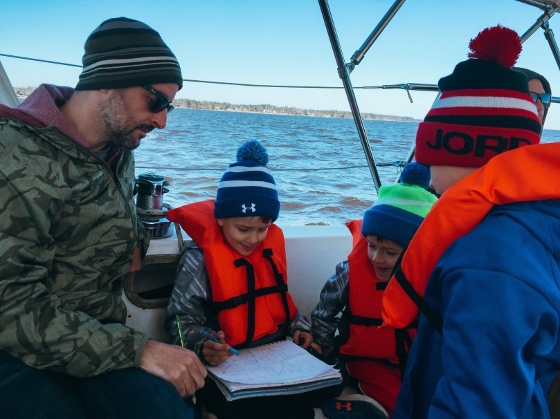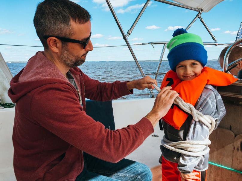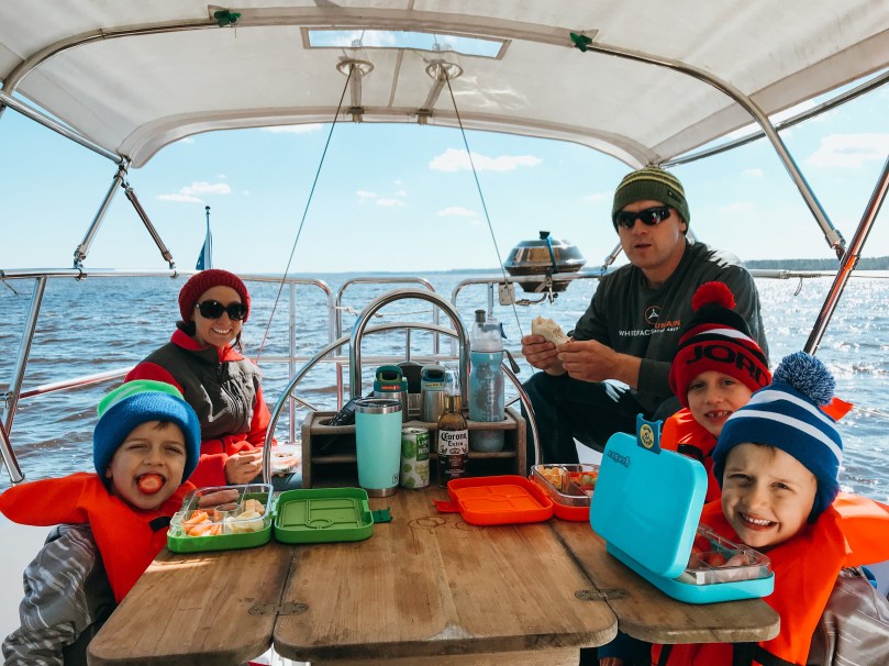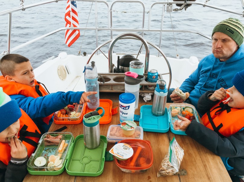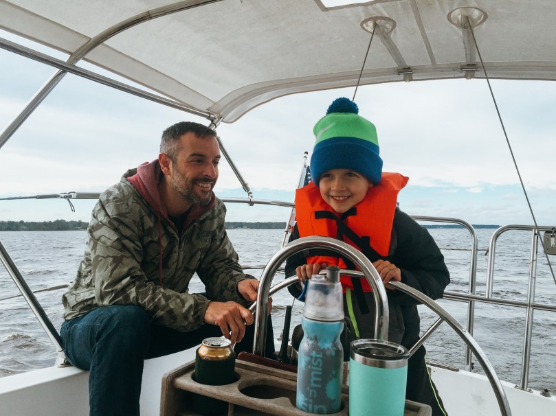 The next morning, we packed some lunches and headed over to Northwest Creek Marina for some sailing. The boys each got a turn to drive the boat and did really well!