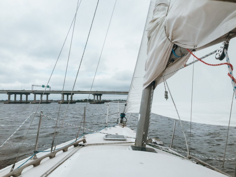 Our favorite campground was closed due to damage from Hurricane Florence and the New Bern KOA was closed to the public as it was providing shelter for locals due to hurricane damage. We wanted to be in New Bern so we didn’t have a long commute to the sailboat each day and ended up finding a site at Moonlight Lake RV Park and Cottages. I have zero pictures of our setup because it was not pretty, but luckily Chris had some photographic evidence. They have cottages that look pretty nice but the RV spots were less than ideal. Fortunately, we were not planning to spend a lot of time at the campground!
